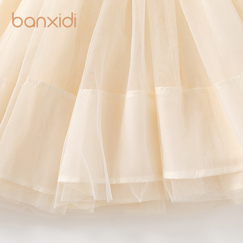 Banxidi女童连衣裙秋装 儿童公主裙周岁礼服春秋宝宝纱裙 2025新款