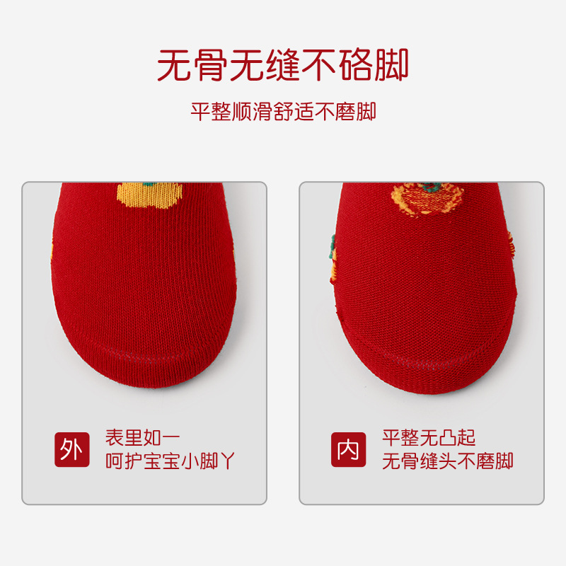 1785儿童袜子批发2024春蛇年送福红色新年袜棉无骨可爱男女童袜子