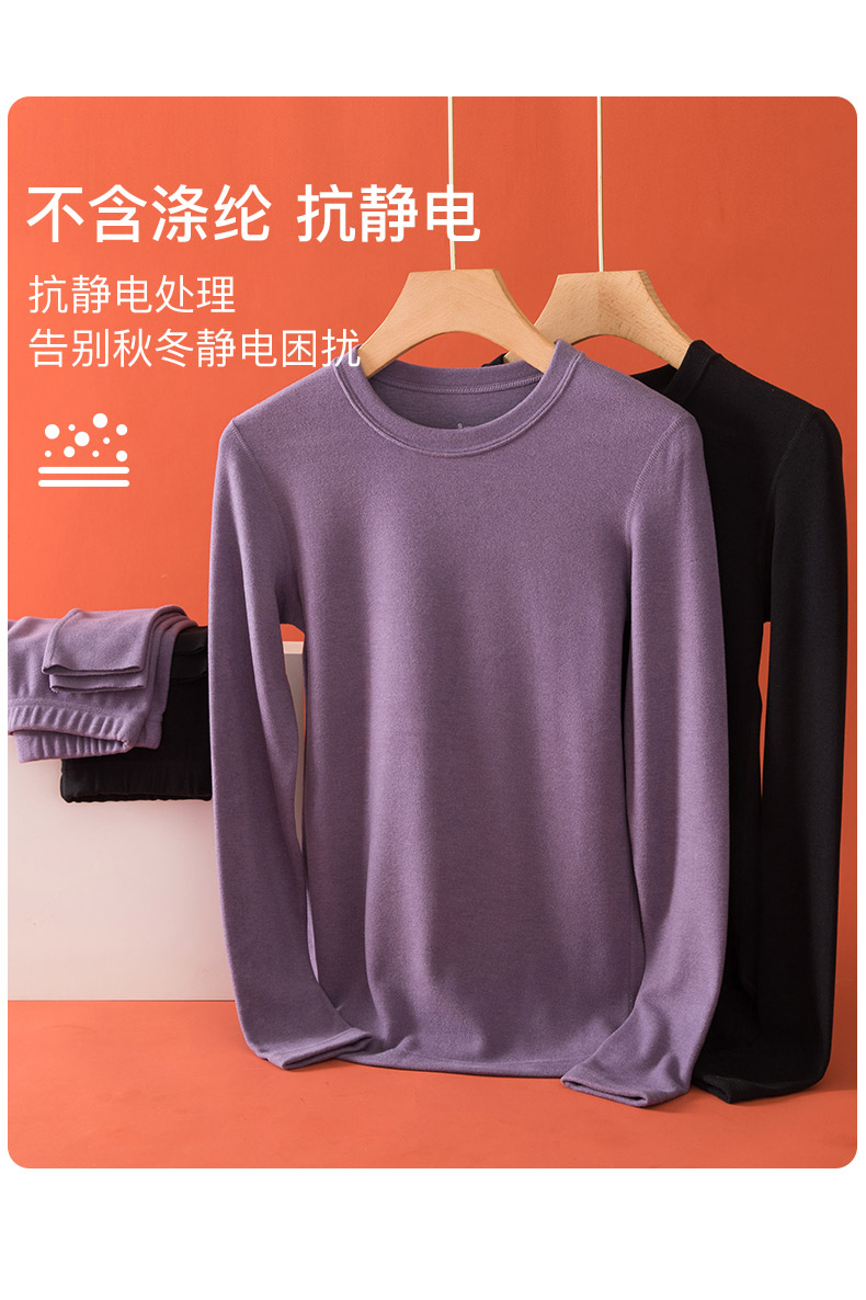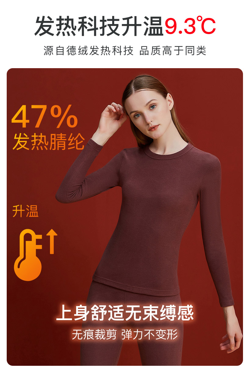 小圆领秋衣双面德绒自发热长袖 单件上衣 保暖内衣女加绒加厚打底衫