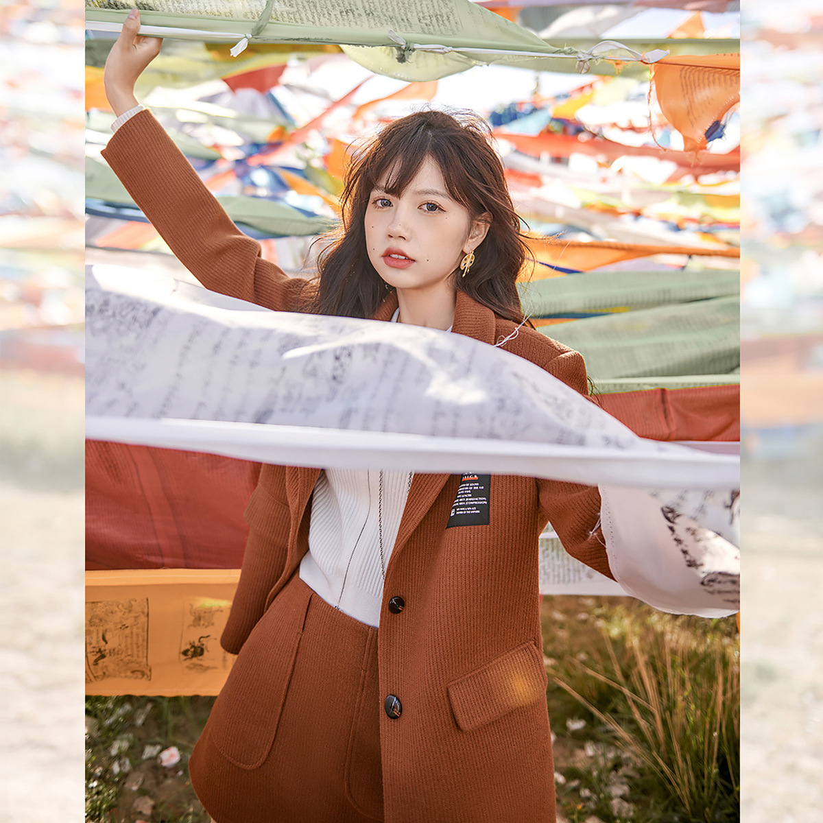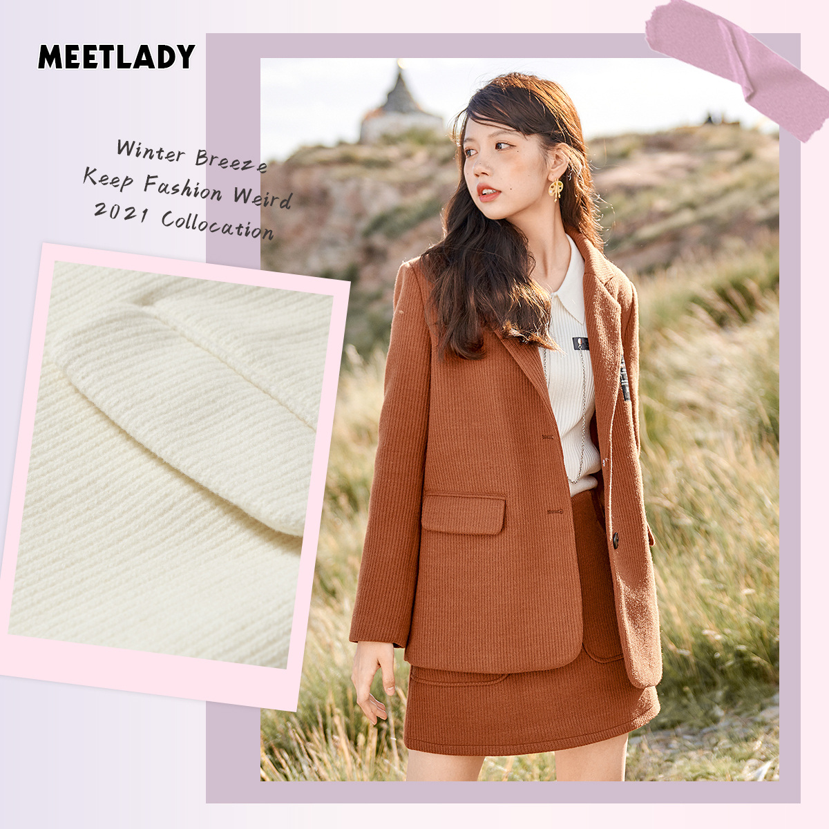 西装 新短款 毛呢外套 复古翻领学院风呢大衣女2023冬季 MEETLADY法式