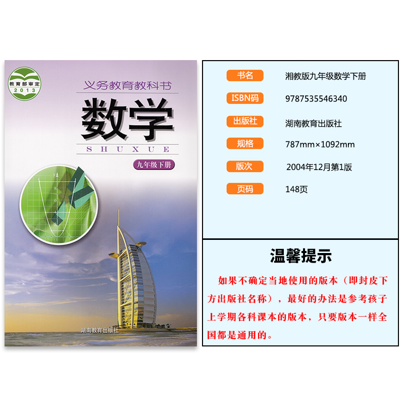 9九年级数学全套教材初三数学上下册义务教育教科书 9九年级上册下册课本湖南教育出版 现货正版 九年级数学上下册全套2本湘教版