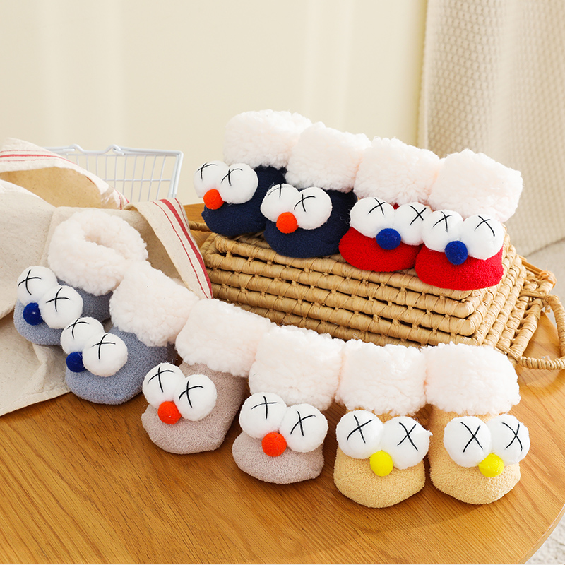 秋冬季 加厚卡通公仔新生婴儿学步袜保暖 宝宝地板袜防滑隔凉地板鞋