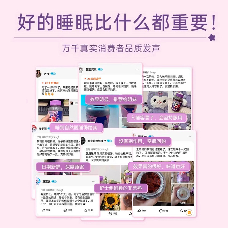 AmeriVita褪黑素软糖sleepwell退黑素失助氨基丁酸晚安瓶闪睡眠片