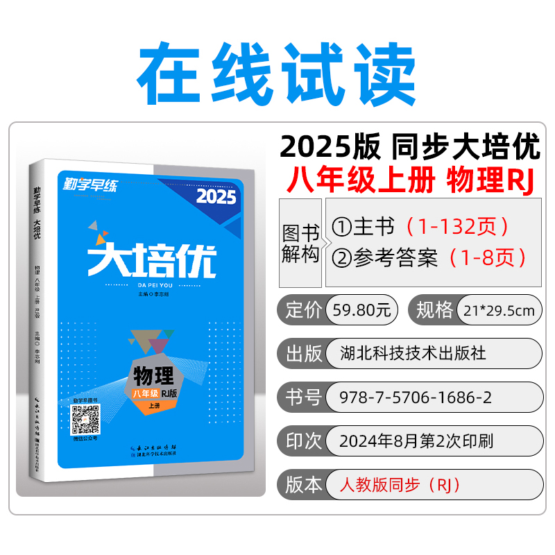 2025勤学早同步练大培优八年级上册物理RJ人教版 初2教材课时同步8上物理全国适用勤学早课时同步作业本天天练 带纸质答案
