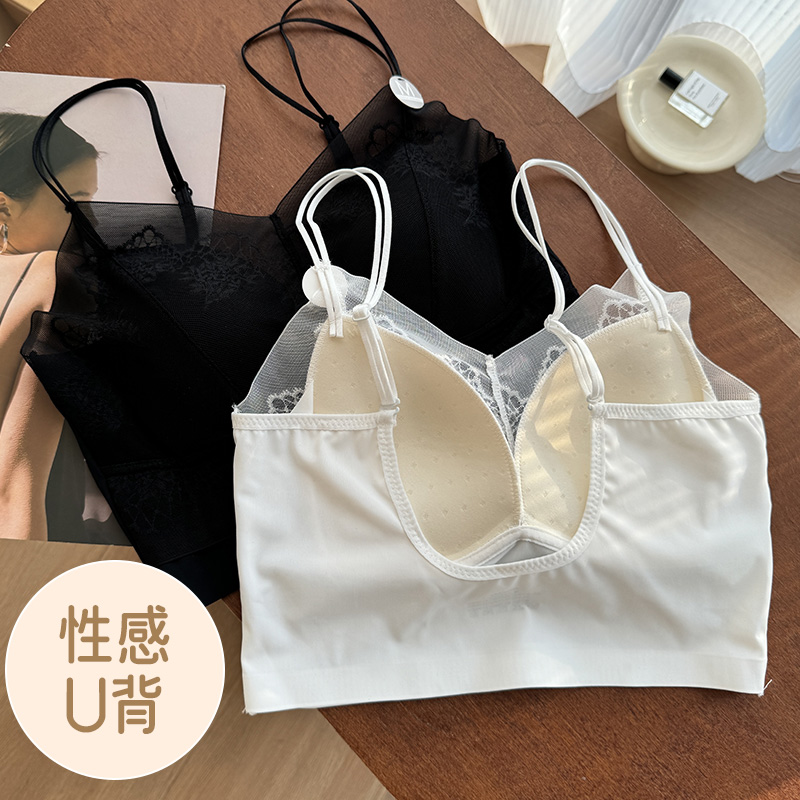 miss 冰丝凉感加厚杯垫蕾丝美背无痕聚拢吊带背心内衣 zzy夏季