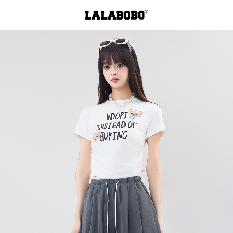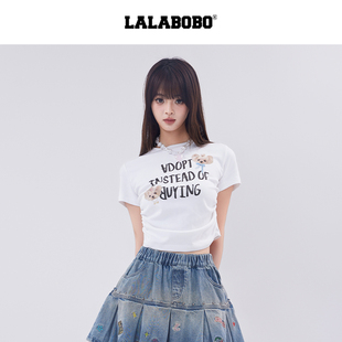 女原创短袖 LALABOBO25年T恤夏新款 字母印花上衣 卓依娜姆同款