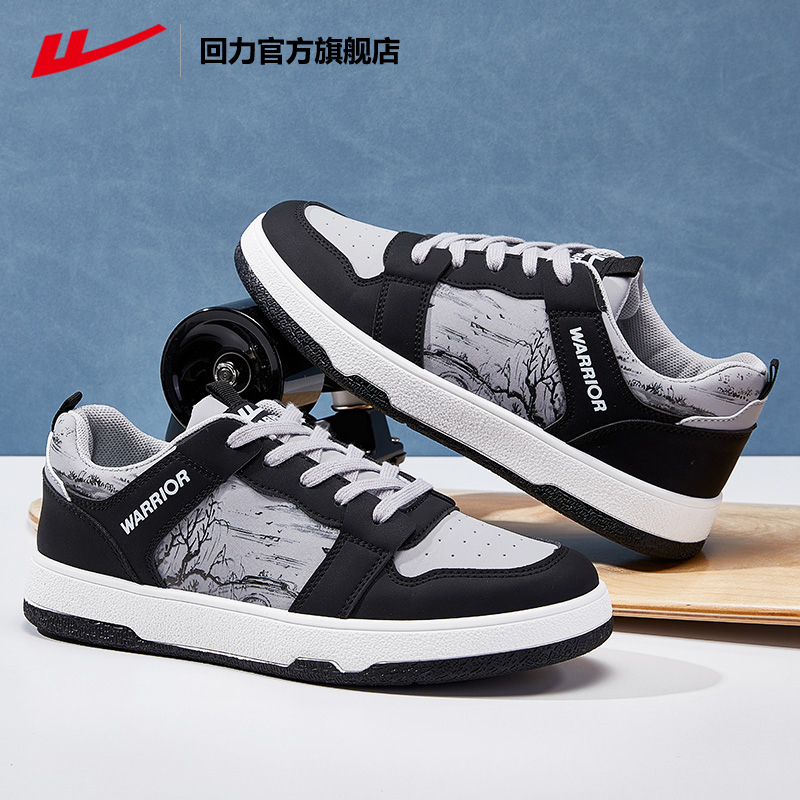 休闲鞋 回力官方旗舰店男鞋 皮面男士 国潮水墨画板鞋 子男 2025年新款