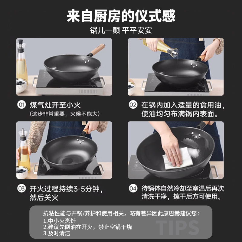 康巴赫铁锅家用炒锅炒菜锅燃气灶电磁炉专用平底真铸铁锅官方正品