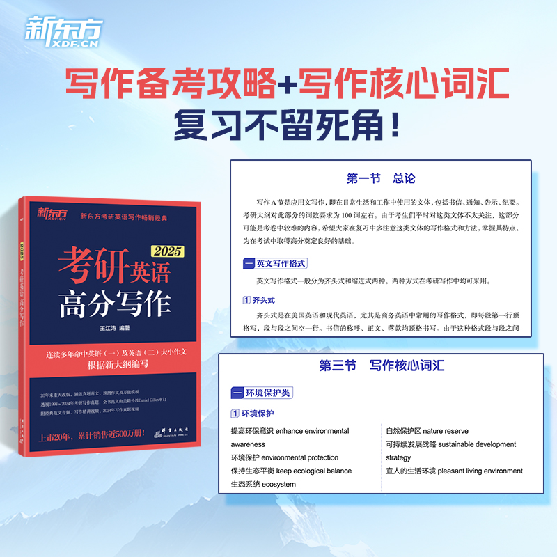 新东方2025王江涛考研英语高分写作 短语 赠长难句 2024唐静翻译法英语一二满分作文写作考前预测20篇历年真题解析课程 官方店
