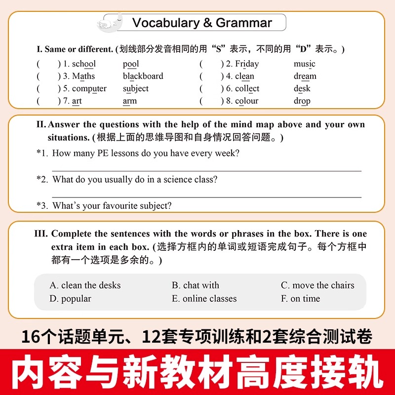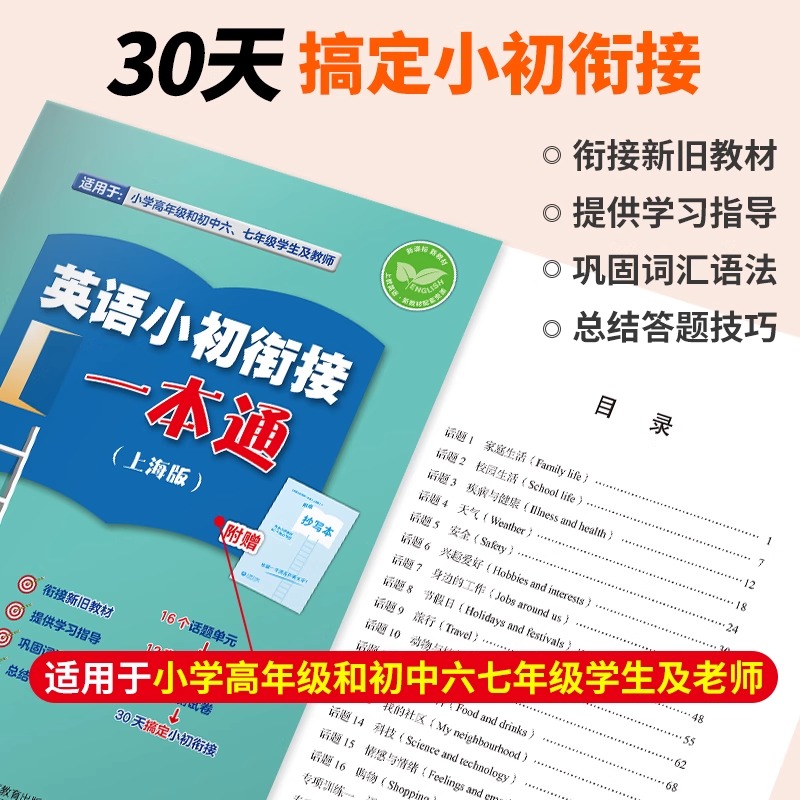 新版 衔接六年级七年级新旧教材精选教材高频话题与新教材高度接轨专项训练综合测试卷答题技巧附赠抄写本 英语小初衔接一本通上海版