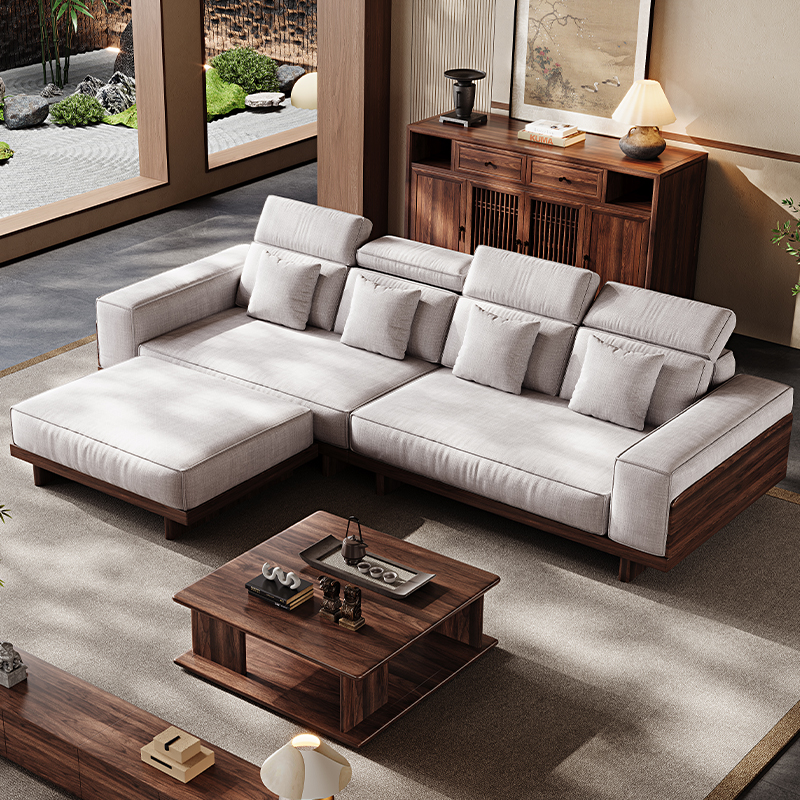 实木沙发北美黑胡桃木宋式 美学贵妃大小户型布艺生态真皮现代简约