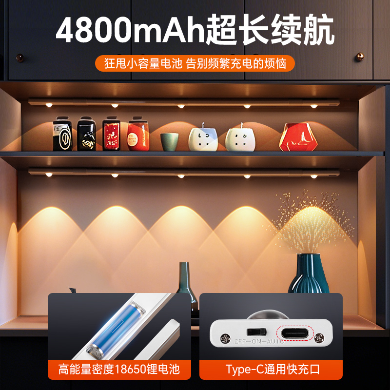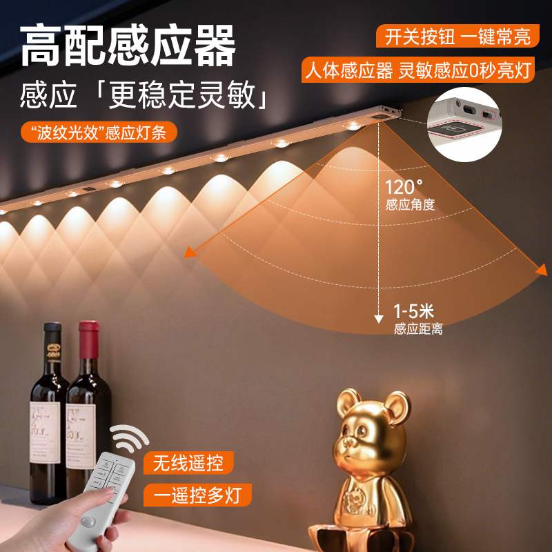 充电感应灯带无线灯条橱柜灯遥控手办展示柜小山丘射灯柜子磁吸
