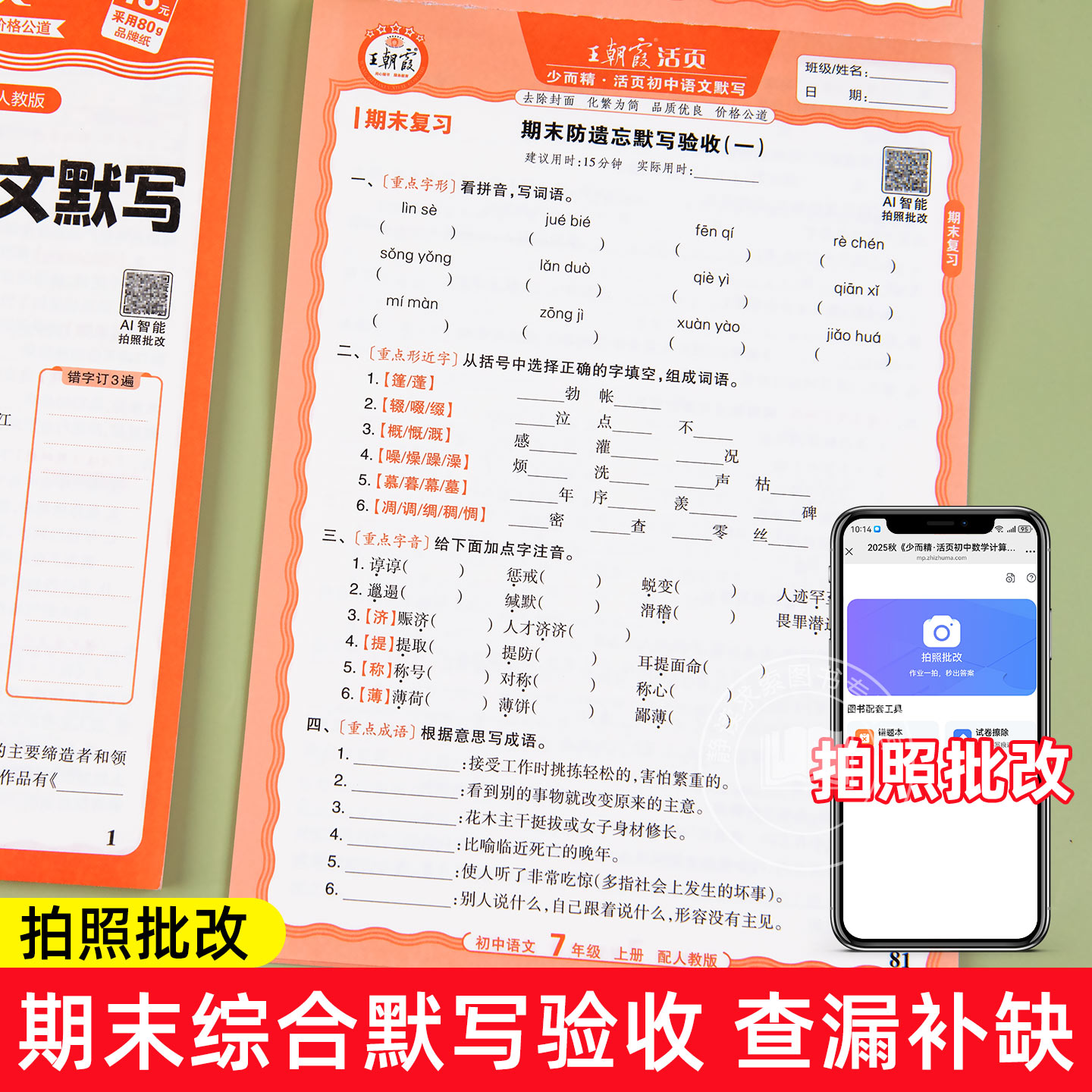 2025新王朝霞初中语文活页默写每日一练七八九年级上册下册同步练习册初一二三单元 活页卷积累与默写能手小达人课本专项训练天天练