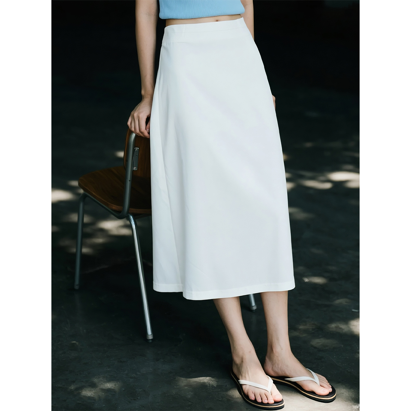 气质高腰a字伞裙 轻奢高级感中长款 白色半身裙女2025年夏季 新款