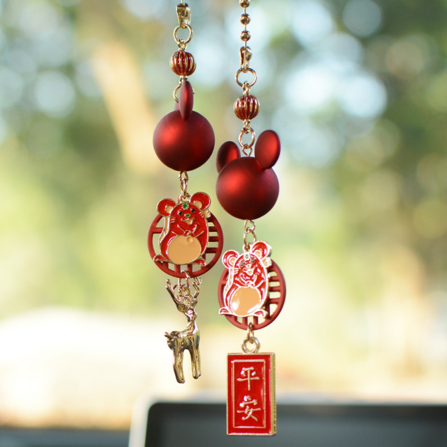 一路平安鹿十二生肖车载挂件后视镜车挂汽车内装 饰品摆件车载用品