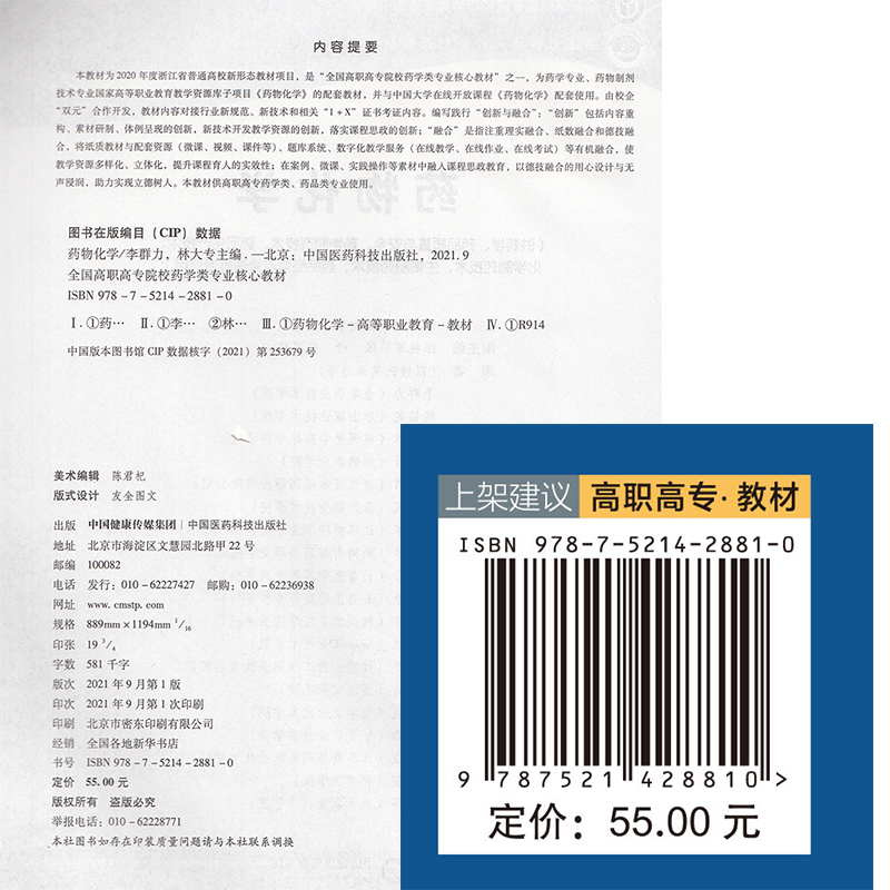 全国高职高专院校药学类专业核心教材 药物化学 李群力 林大专 社9787521428810 正版 中国医药科技出版 现货平装