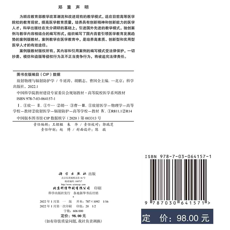 高等院校医学系列教材主编牛延涛胡鹏志曹国全科学出版 放射物理与辐射防护学案例版 社9787030641571 现货平装 正版