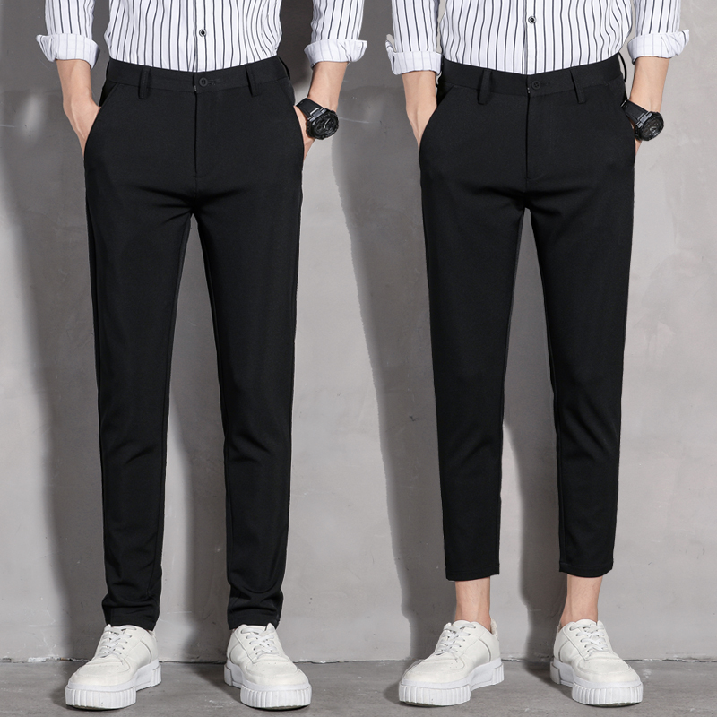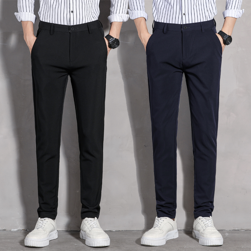 子修身 男生裤 潮流小脚西裤 男士 不粘毛 冬天款 上班长裤 纯黑色休闲裤