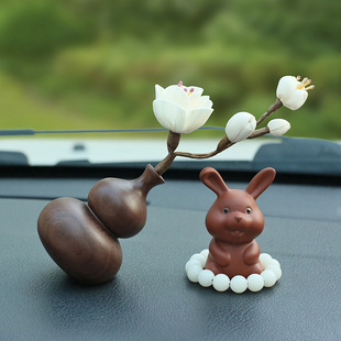 龙年新款 饰女 车内饰品汽车摆件高端男车载香水中控台摆件生肖兔装