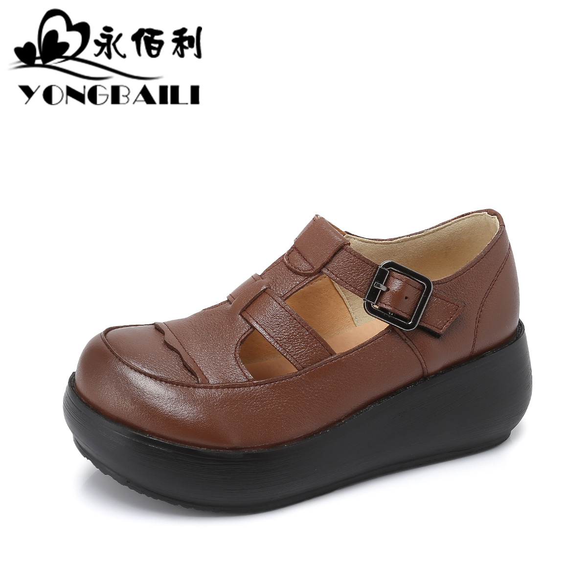 2025春新款 凉鞋 松糕鞋 复古猪笼鞋 真皮女鞋 厚底增高牛皮高跟休闲鞋