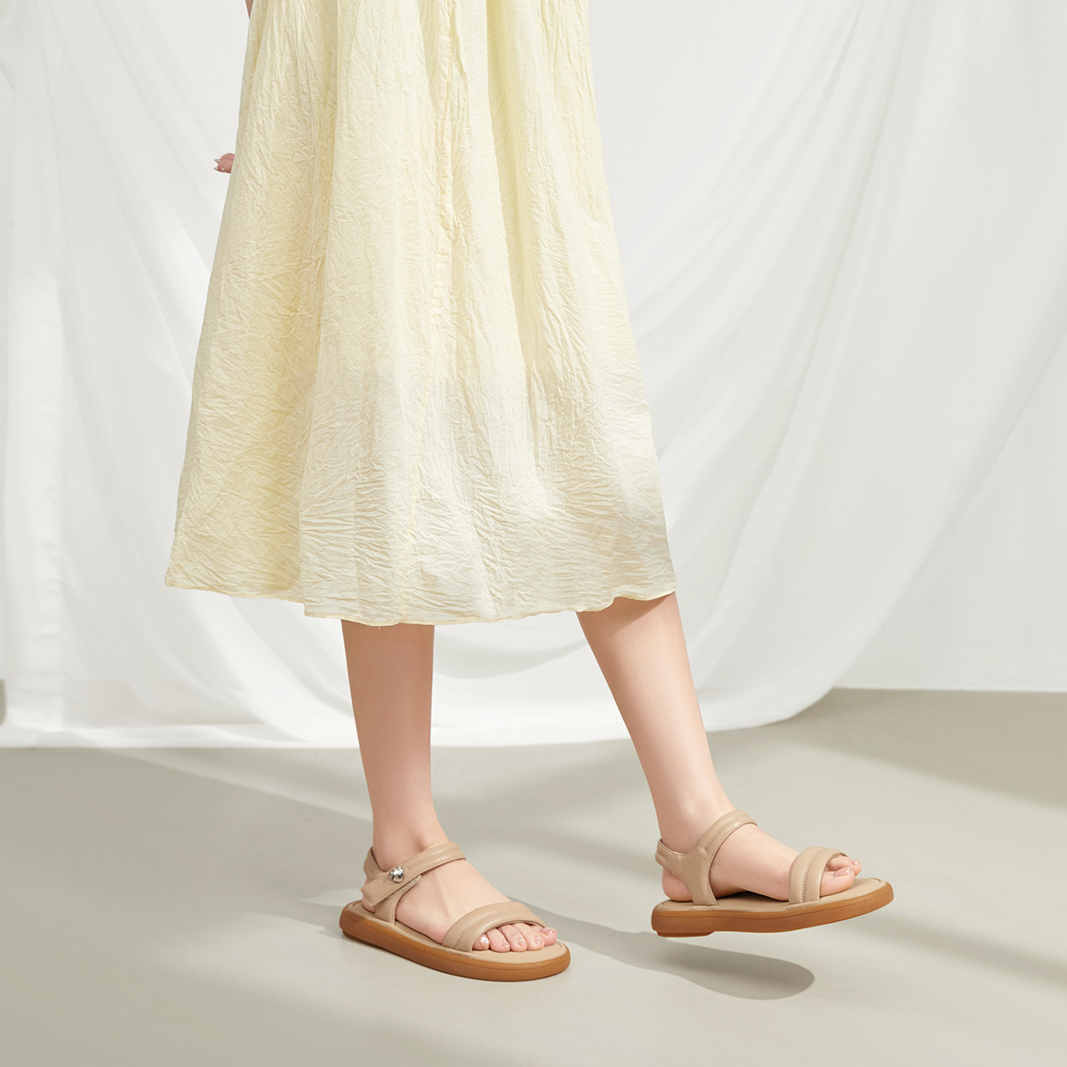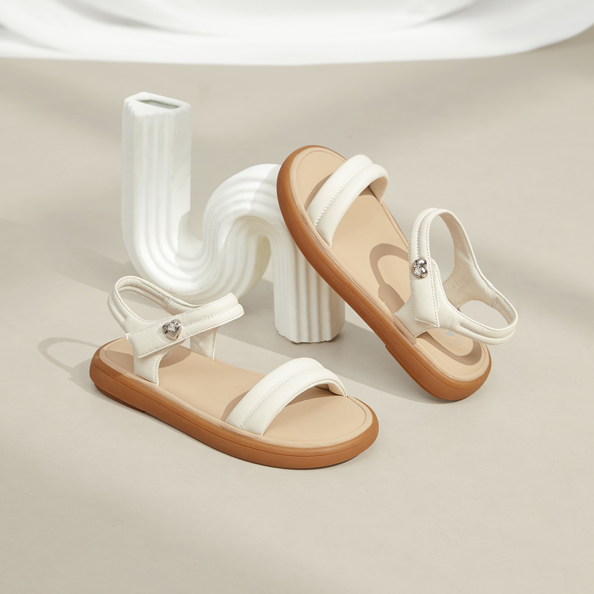 2025夏季 女款 新款 魔术贴厚底凉鞋 一字带真皮软底妈妈凉鞋 骆驼女鞋