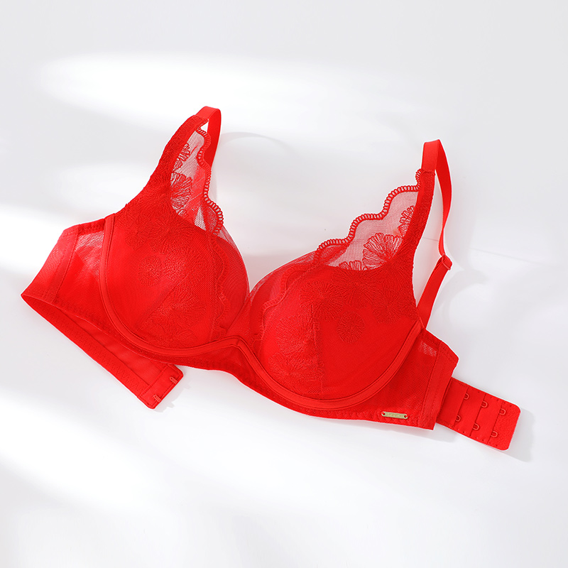 安莉芳官方奥莱安朵深V性感蕾丝文胸厚款 杯 聚拢小胸内衣 法式