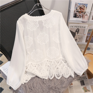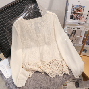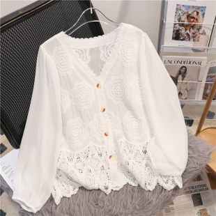 v领上衣女2025年春季 衬衫 新款 复古设计感拼接镂空长袖 潮 法式 春装