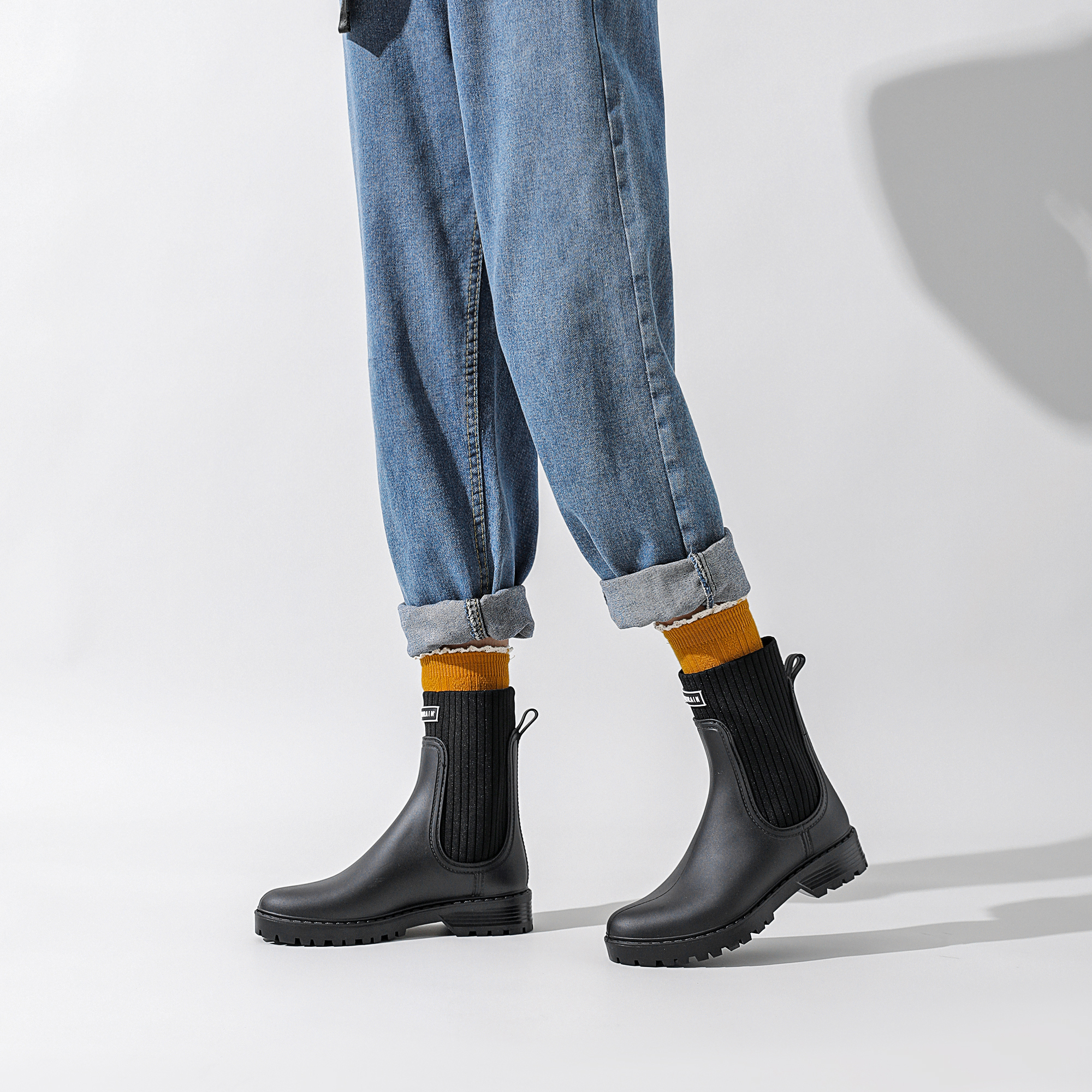 防水瘦瘦靴防滑雨靴短筒水鞋 雨牧新款 时尚 女款 飞织接帮切尔西雨鞋