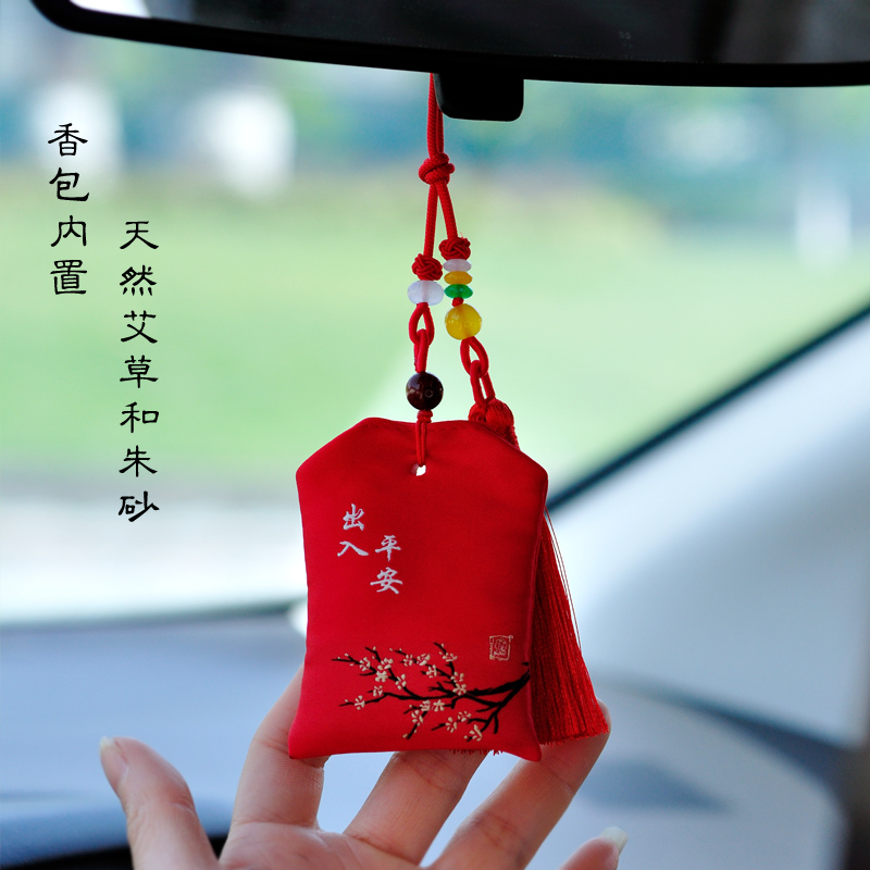 汽车挂件中国风流苏香囊吊饰网红同款 车载后视镜饰品出入平安香包