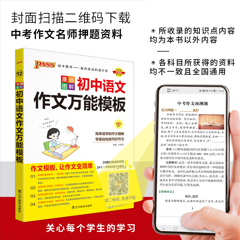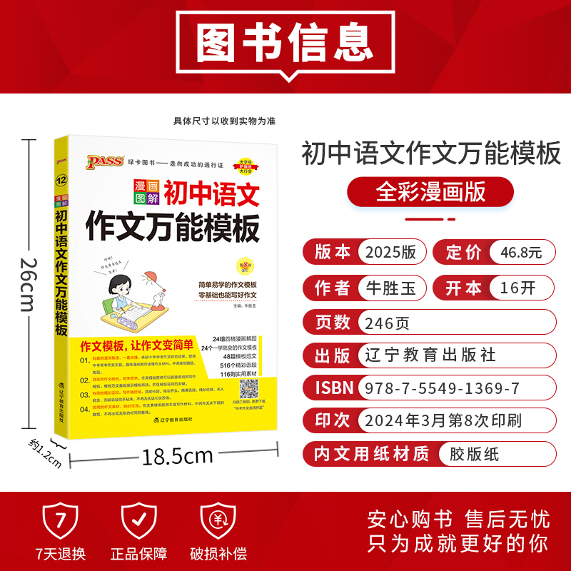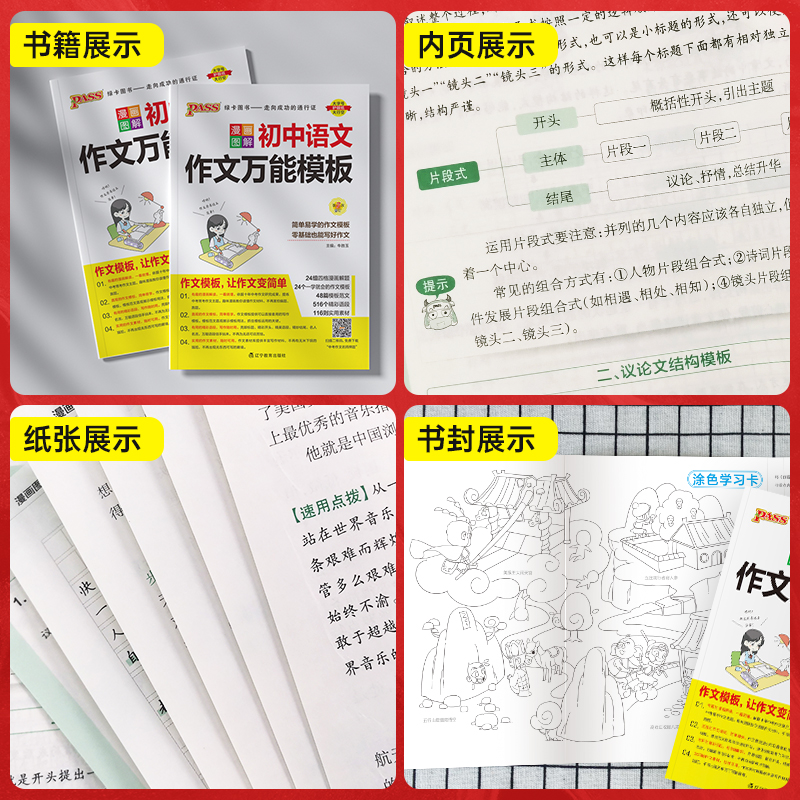 初一二三中考必背范文书同步写作优秀素材七年级满分作文一本全 pass绿卡图书 25新版 初中语文作文模板