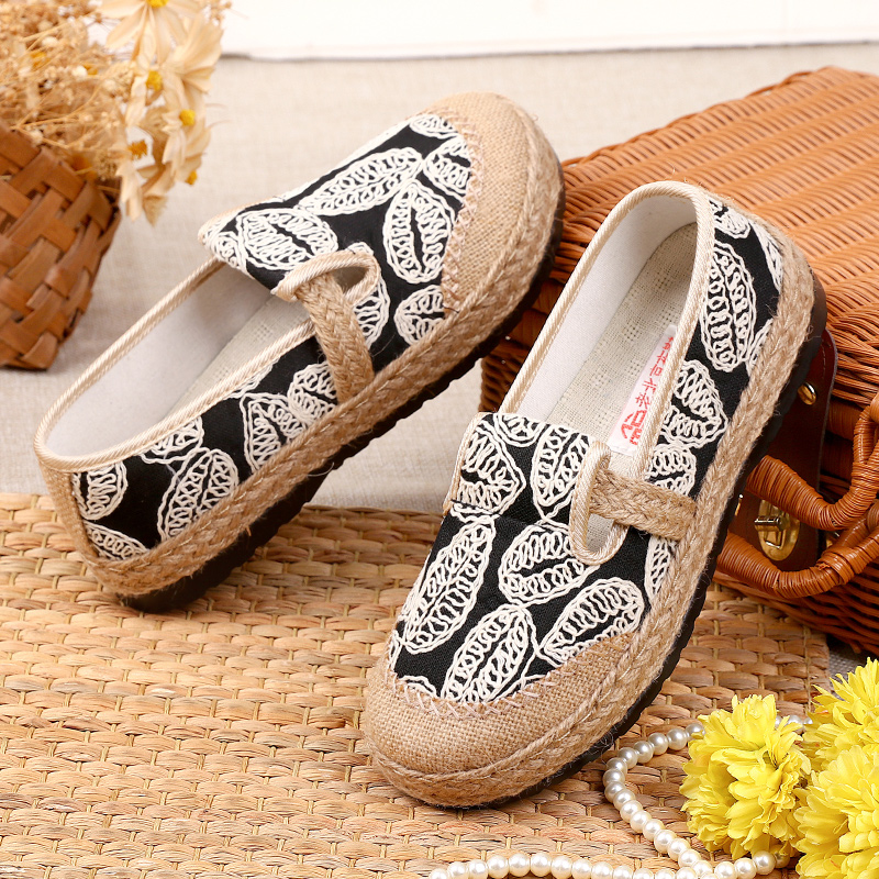 软底民族风汉服鞋 老北京布鞋 厚底休闲亚麻渔夫鞋 透气单鞋 女春夏款