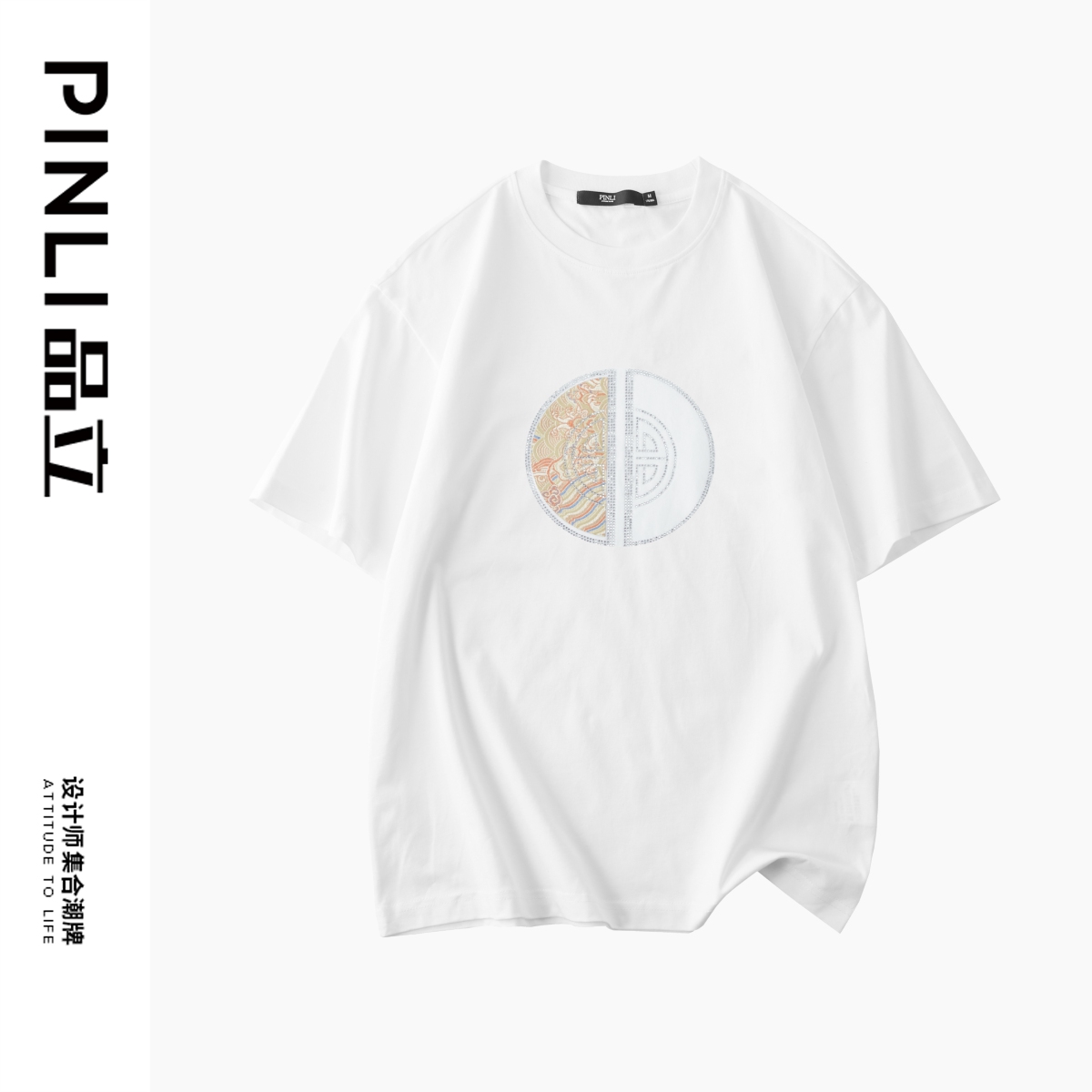 圆领烫钻短袖 新款 T恤潮牌休闲国潮男上衣 夏季 PINLI品立新中式