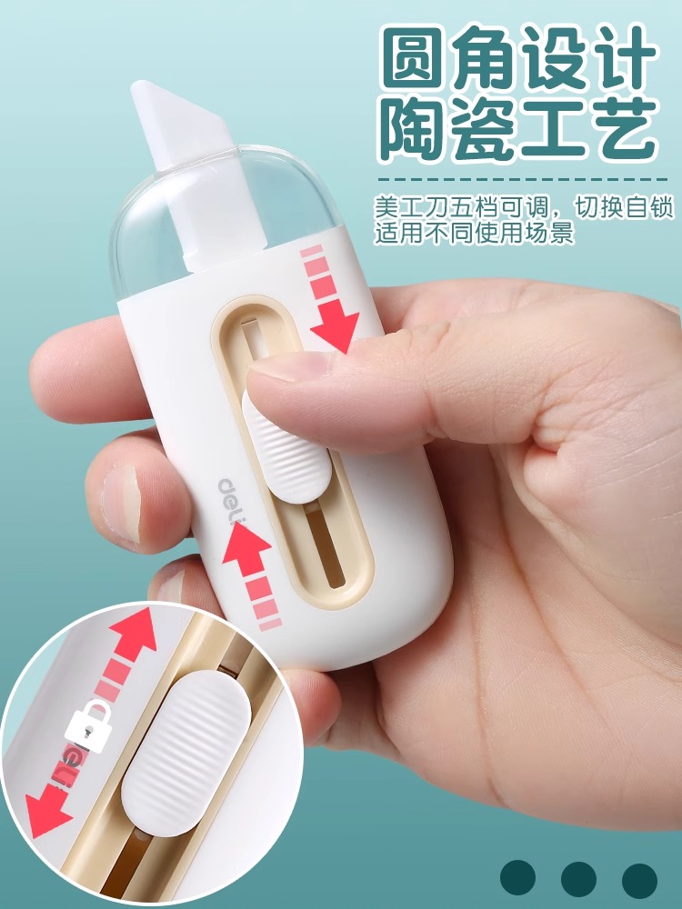 得力陶瓷美工刀创意迷你随身笔式 裁纸刀儿童女孩手帐刀刻刀拆快递神器防锈不伤手开箱刀壁纸刀切割刀钥匙扣