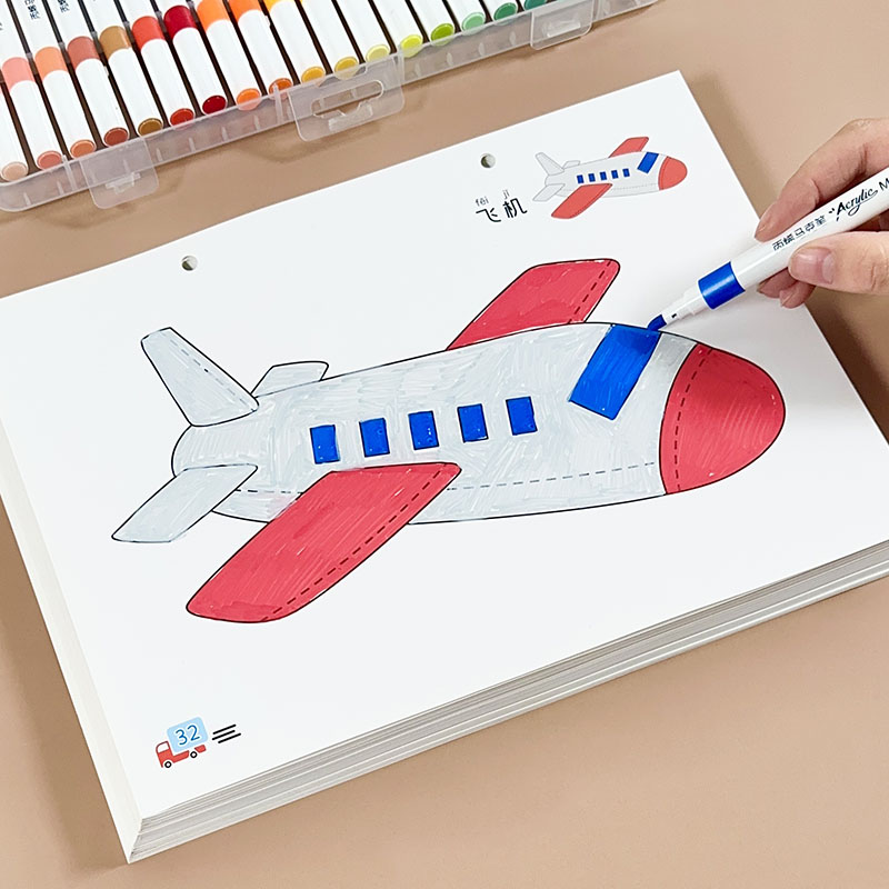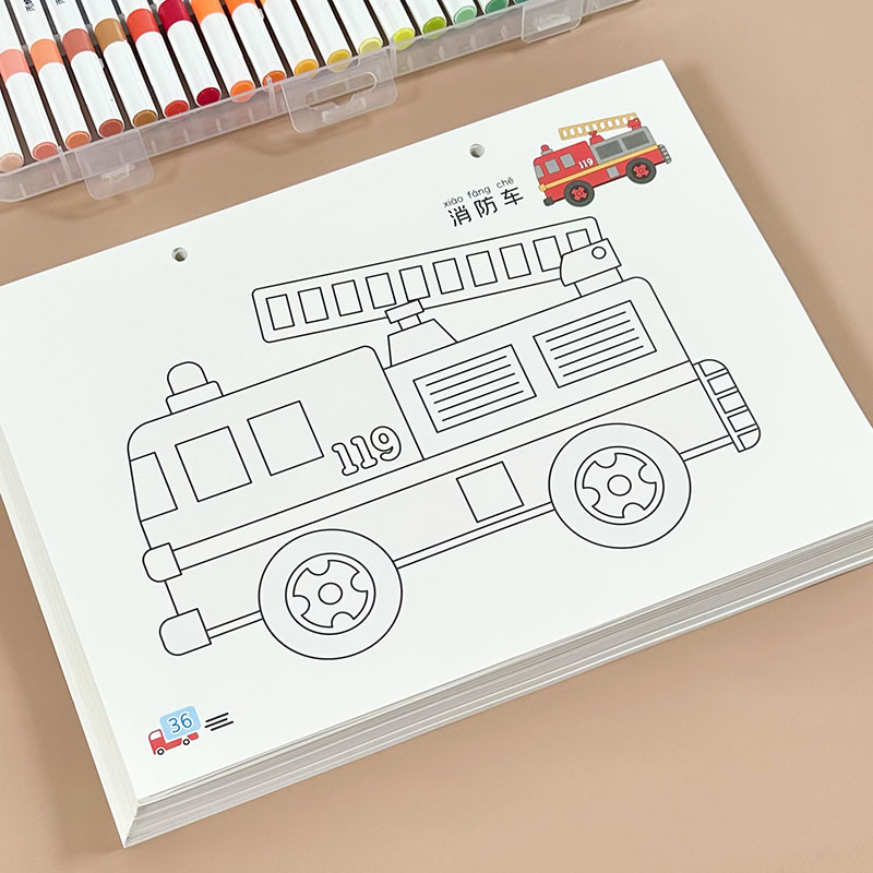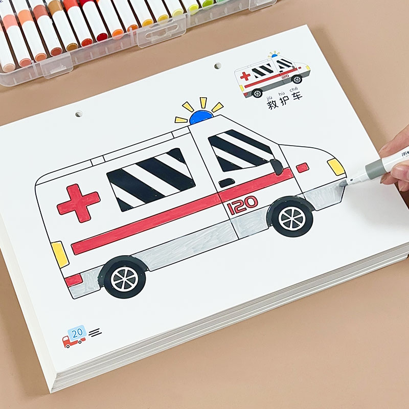 儿童马克笔涂色画本男孩工程车交通工具画本水彩笔绘画套装 幼儿园