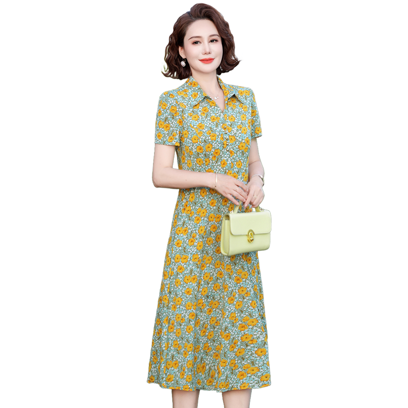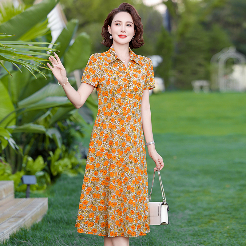 中老年妈妈宽松大码 中年女装 夏装 冰丝连衣裙2025新款 碎花裙子 短袖