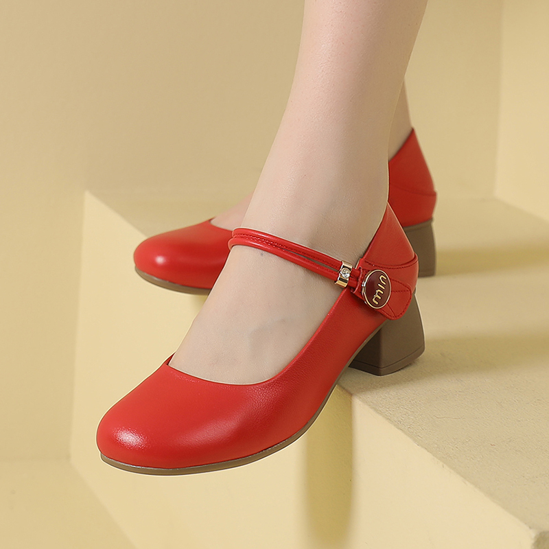浅口红色单鞋 粗高跟婚鞋 子D7L1DAQ5 女2025新款 百丽樱桃玛丽珍鞋