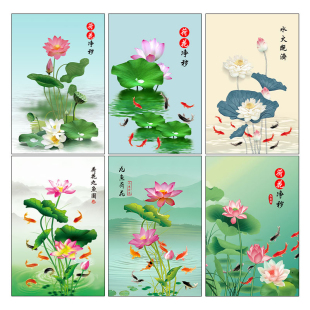 荷花装 饰贴画卫生间专用自粘墙贴壁画防水卧室入户墙面家居厨房