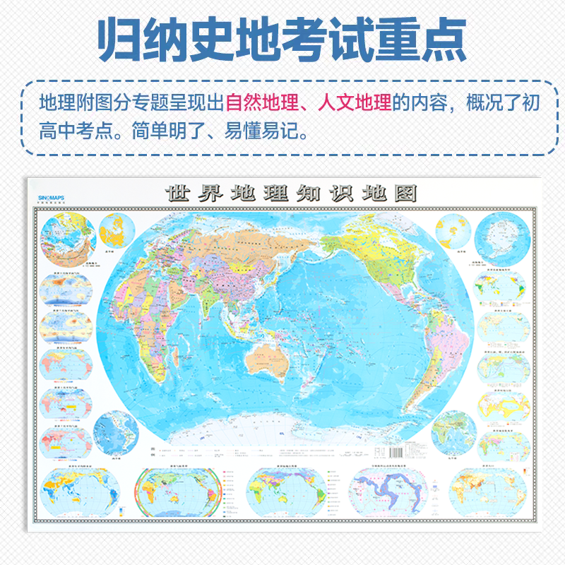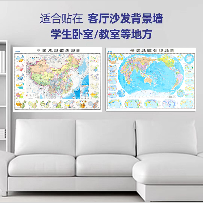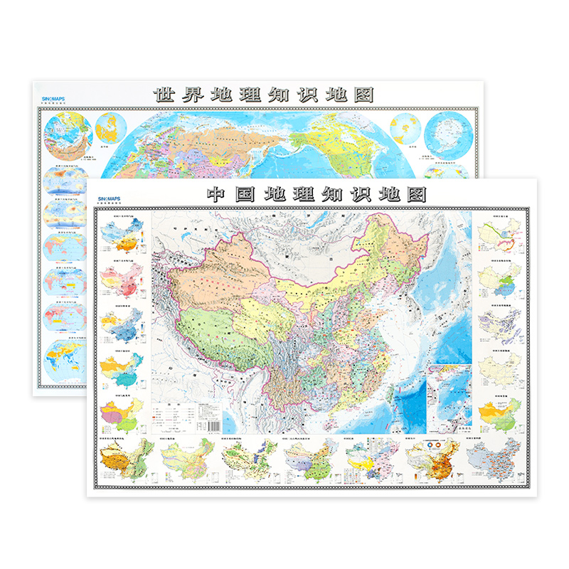 共2张 桌面速查 2024年中国地图和世界知识地图 人文地理 初中地理学生专用 自然地理