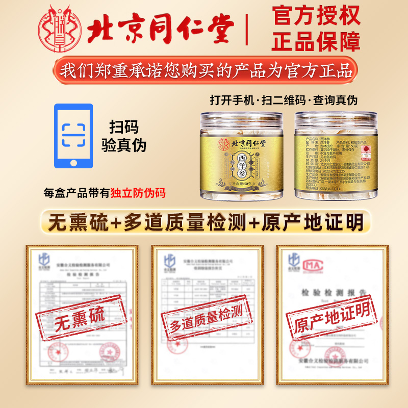 北京同仁堂西洋参片500g特级官方旗舰店正品 西洋参礼盒补品送长辈