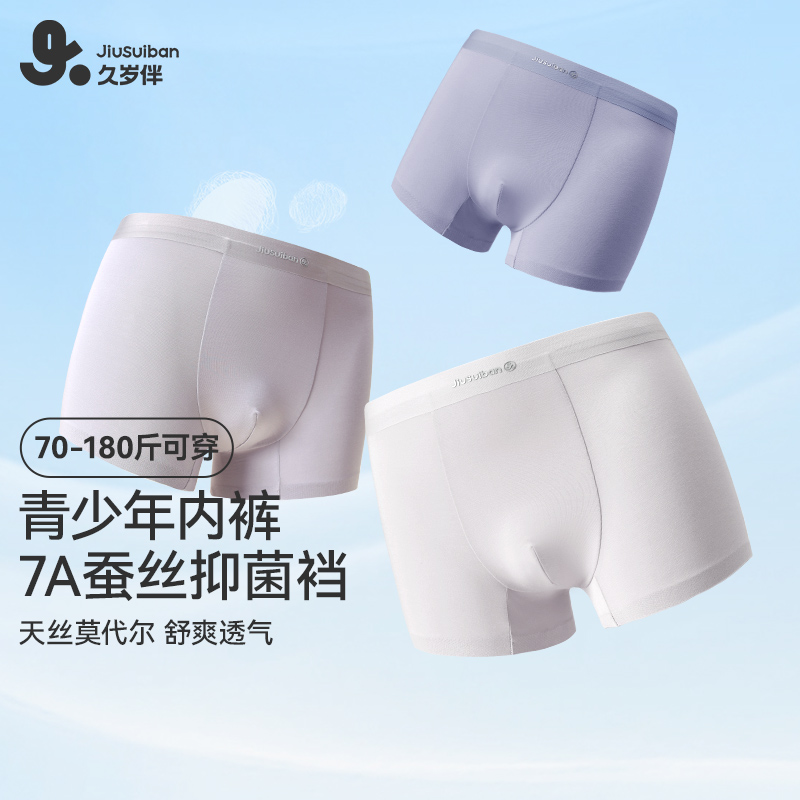青少年四角短裤 3件 纯棉透气裆新款 运动内裤 男生 蕉内银皮301S男士