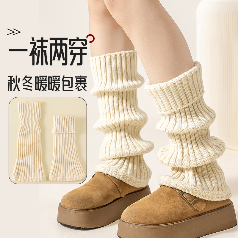 羊毛袜套显瘦腿套保暖针织小腿袜子女秋冬款 堆堆长袜 y2k配小皮鞋