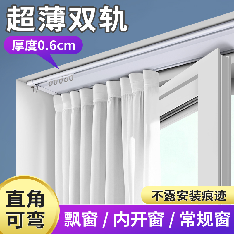 铝合金内开窗轨道窗帘直轨超薄轨道静音滑道顶装 窗帘配件卧室客厅