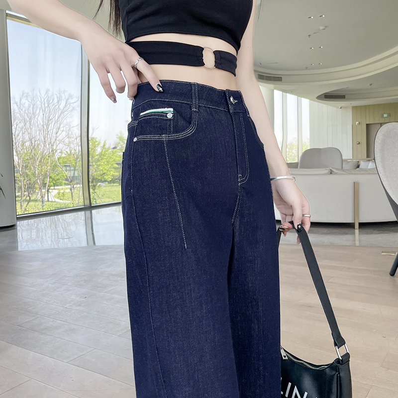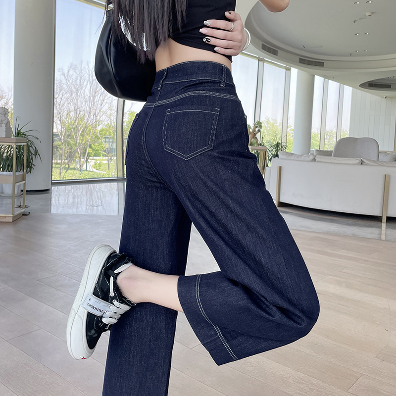 高腰显瘦宽松八分直筒裤 2025年薄款 女小个子夏季 深蓝色阔腿牛仔裤