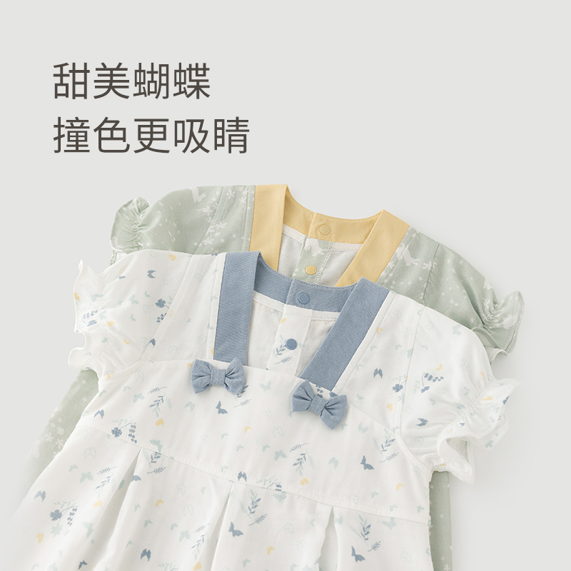 婴儿哈衣爬服公主新中式 凉感薄款 连体衣竹纤维纱布夏季 女宝宝短袖