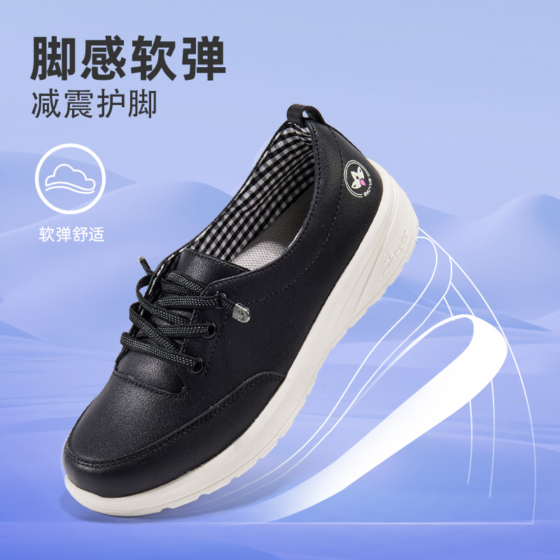 中老年防滑轻便女浅口 一脚蹬软皮软底妈妈鞋 舒悦老人鞋 舒适小皮鞋