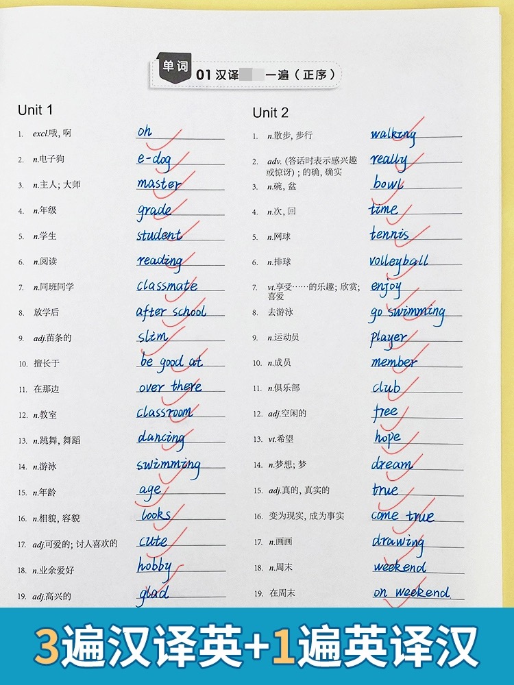 初中英语七八九年级上册下册全一册单词记忆本听写本默写本英汉互译练习外语本 默写100江苏译林版 易蓓