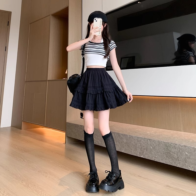 白色蛋糕短裙女夏季 高腰显瘦小个子蓬蓬半身裙芭蕾a字裙 2025新款
