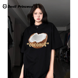 正肩情侣上衣夏新款 美式 t恤女下衣失踪大版 超火ins风街头潮牌短袖