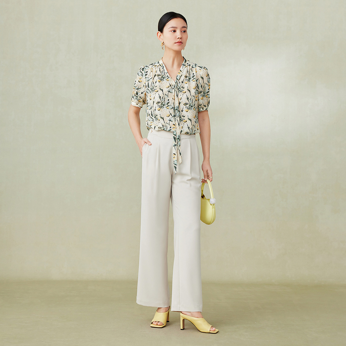灰白直筒宽松百搭高腰长裤 菲妮迪西裤 新款 2024年夏季 女 拖地休闲裤
