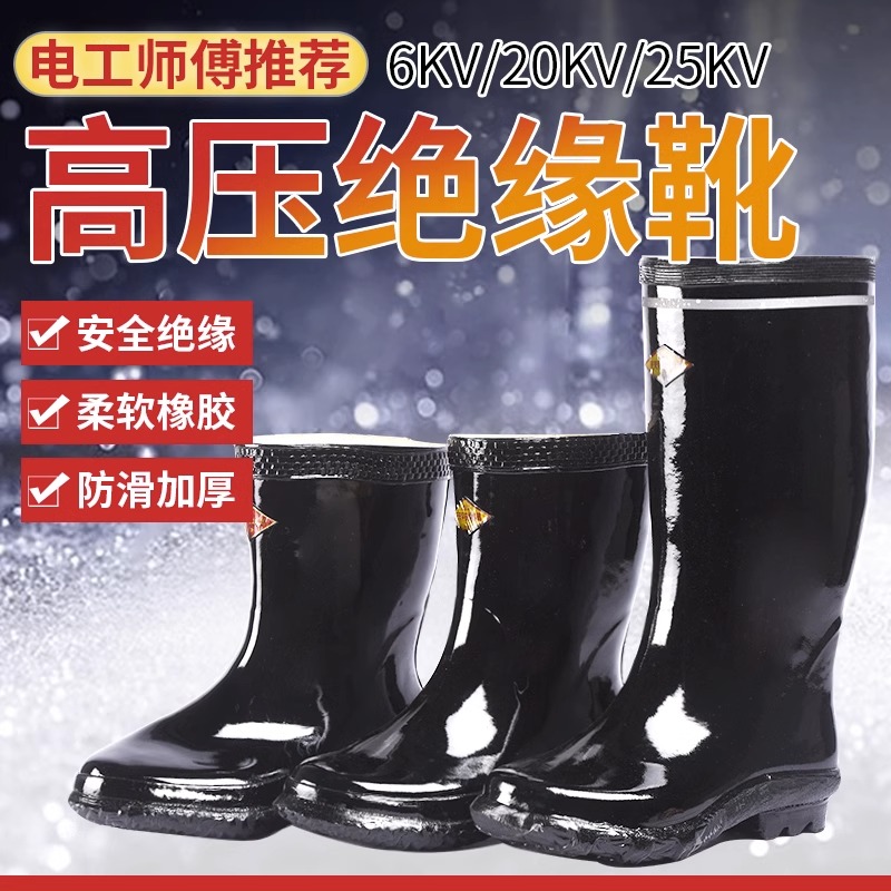 35kv橡胶防电防水中高筒电力高压绝缘雨鞋 电工绝缘靴男10kv20